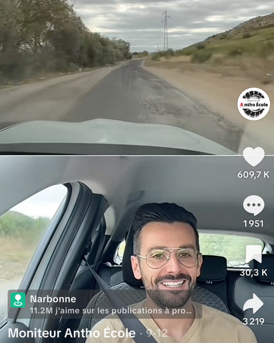 « J’ai commencé le 26 mai 2024. C’était un dimanche. J’ai créé le compte et je suis allé dans une zone industrielle pour faire des démarrages en côte. C’était la première vidéo, tout seul, sans élève. » Anthony est moniteur dans une célèbre auto-école narbonnaise et a ainsi décidé un beau jour de partager son quotidien de professeur de conduite sur les réseaux sociaux. Le compte TikTok, qu’il anime depuis bientôt un an et demi, affiche près de 130 000 abonnés et ses vidéos dépassent bien souvent le million de vues ! Pédagogie, humour et naturel vont de pair et font le succès du compte baptisé « moniteur.antho.école« … Humour, disait-on !