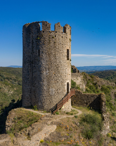 Photo principale : les vestiges majestueux du château de Lastours. ©AMPM