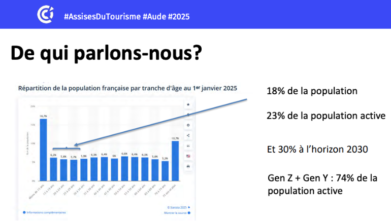 Nés entre 1997 et 2012, les jeunes de la Gen Z arrivent dans le tourisme avec des attentes précises. « Ils ne veulent pas qu’on les séduise, ils veulent qu’on les convainque », a rappelé Véronique Vidal, animatrice des 27es Assises du tourisme de l’Aude qui se sont tenues, jeudi 27 novembre, au cinéma VEO de Castelnaudary. 140 participants réunis autour du thème : « La Génération Z et ses codes : réenchantez leur expérience, réinventez votre métier » Organisé par la CCI de l’Aude, en partenariat avec l’Agence de développement touristique (ADT), l’événement a mis en débat les nouvelles attentes des jeunes nés entre 1997 et 2012, tant comme voyageurs que comme futurs saisonniers ou employés du secteur.