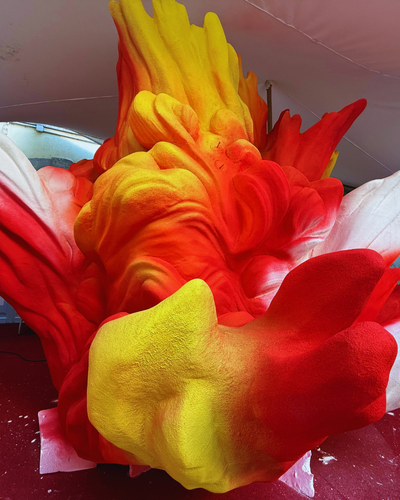 Des moments de rencontre où une question revient souvent : comment installer, une fois achevée, cette structure aussi imposante sur le toit du Centre d’art contemporain ? L’artiste sourit : “Bloom est composée de blocs de polystyrène. Ce qui est bien avec cette matière c’est qu’elle est composée d’air à plus de 90 %. Donc au regard du volume qu’elle nous permet de créer, elle ne pollue pas tant que ça. Son autre avantage c’est que l’air, c’est léger ! L’oeuvre ne pèse donc “que” 250 kilos malgré sa taille imposante. Ensuite, elle sera divisée en quatre parties pour être acheminée sur sa plateforme en hauteur. Des découpes ont déjà été effectuée pour cela.” Sacré pari pour celui qui a décroché le titre de Meilleur ouvrier de France en 2011, catégorie sculpteur.